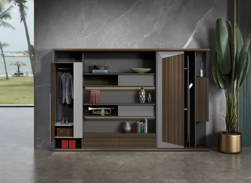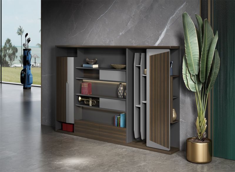 1、貼面材料:采用澳大利亞珍稀的尤加利原木本色為基色,先進(jìn)的歐洲染色工藝、配上實色金屬啞光高溫烤漆,紋理精致清晰 2、封邊用材:與貼面相同的木皮封邊; 3、基材:采用“上思華林”E0級高密度板; 4、油漆:面漆采用“華潤”PU聚脂漆; 5、五金配件:德國進(jìn)口BMB品牌緩沖導(dǎo)軌、BMB緩沖門鉸;歐派克旗艦5號或圖特T312緩沖趟門配件;臺面配黑拉絲走線盒及黑拉絲裝飾鋁板;隱藏式走線功能; 6、特殊工藝:底部采用大斜邊工藝,由巴吉5軸數(shù)控中心加工完成、暗藏?zé)魩?,配獨立控制遙控器