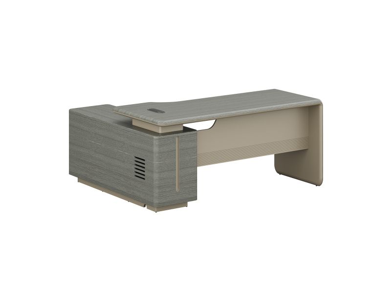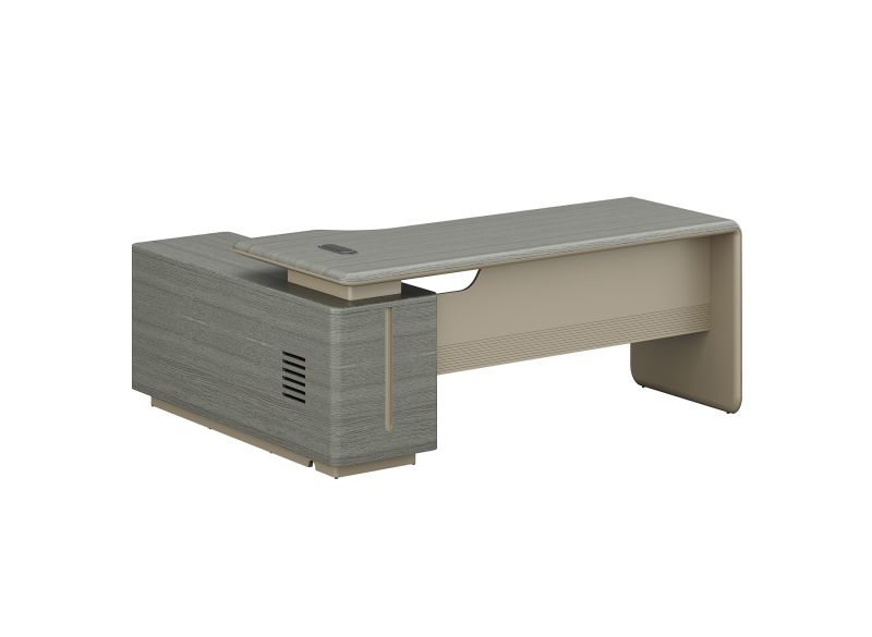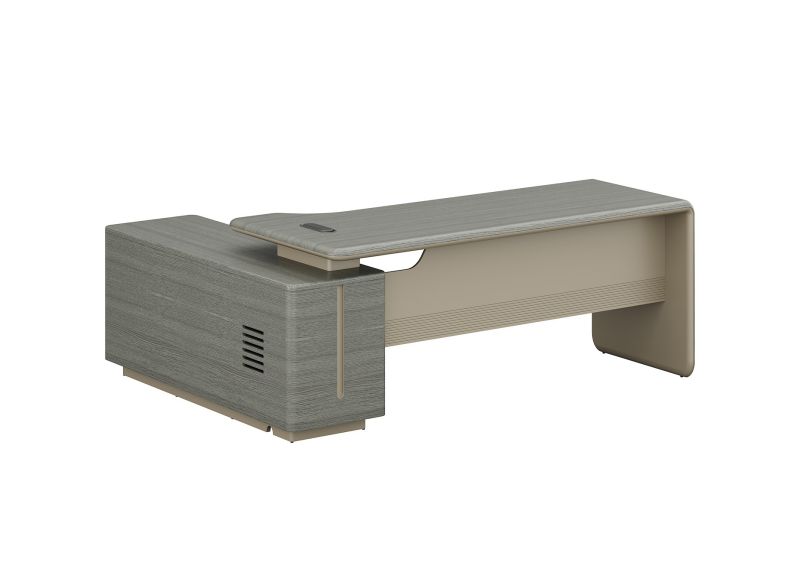 1、貼面材料:采用泰國灰像木皮,厚度0.6mm 2、封邊用材:與貼面相同的木皮封邊; 3、基材:采用“上思華林”E0級高密度板; 4、油漆:面漆采用“華潤”PU聚脂漆; 5、五金配件:博格維斯品牌緩沖導軌、NOVEI緩沖門鉸;臺面配黑拉絲走線盒;帶指紋鎖,電力軌道插座